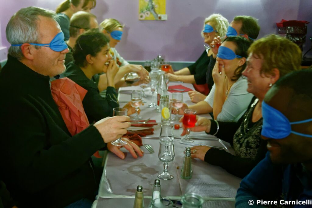 Nous avons, Aurélie et moi, décidé de partager nos passions avec vous, autour d’un repas « sans y voir ». Aurélie est la fondatrice des 5à7 sensoriels, et moi du Coaching autour du pot… Vous imaginez bien que ce type de repas c’est un peu la fête des sens et des prises de conscience. Alors, en partenariat avec le Café de la Paix à Auvers sur Oise, nous avons donc décidé d’organiser pendant ces vacances un repas dégustation… sans les yeux !