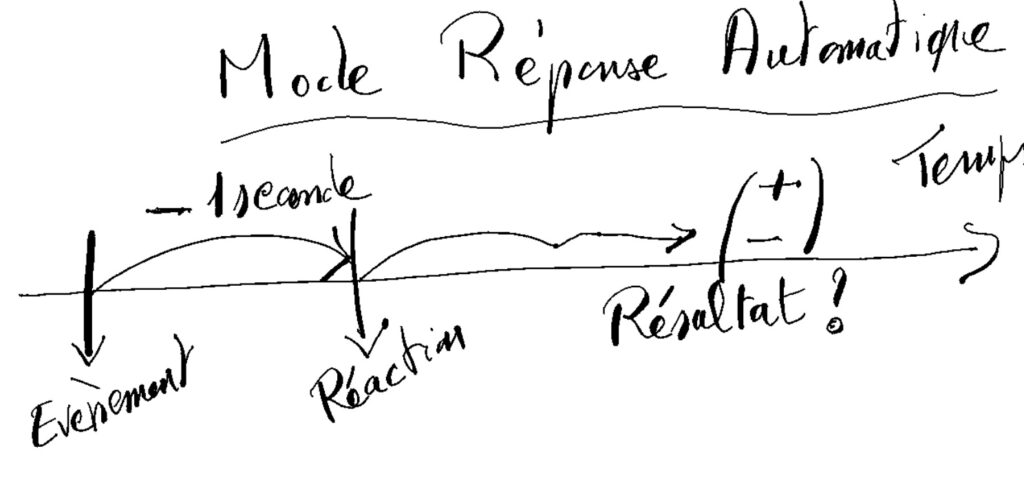 En mode réponse automatique, la personne suite à un évènement, va réagir avec le pilote de base de ses comportements, c’est à dire « Éviter la souffrance à tout prix« . (Voir article précédent)